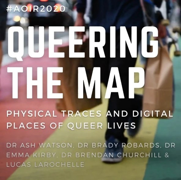 Robards B, Watson A, Kirby E, Churchill B and LaRochelle L (2020) Queering the Map: Physical traces and digital places of queer lives. AoIR Selected Papers of Internet Research. https://doi.org/10.5210/spir.v2020i0.11319.